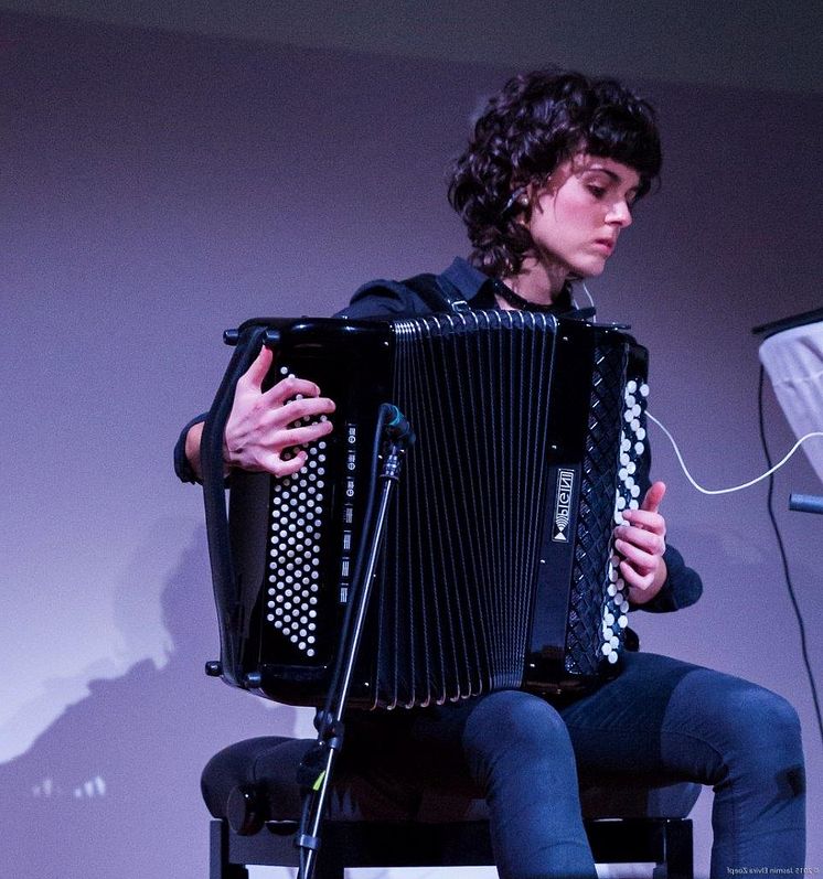 Künstlerin Roser Pla mit Akkordeon im letzten Jahr bei musIC 2.0