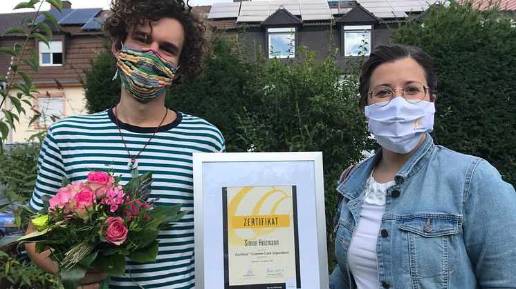 Die Übergabe des Cochlear Graeme Clark Stipendiums 2020 an Simon Heizmann erfolgte vor wenigen Tagen an seinem Studienort Mainz. Die ursprünglich geplante Stipendienfeier in der HNO-Klinik des Universitätsklinikums Freiburg musste aufgrund von COVID-19 in diesem Jahr leider entfallen. In der renommierten CI-Klinik war auch Simon Heizmann im Alter von zwei Jahren mit seinem ersten Cochlea-Implantat versorgt worden, 2017 folgte eine weitere CI-Implantation auf dem anderen Ohr.